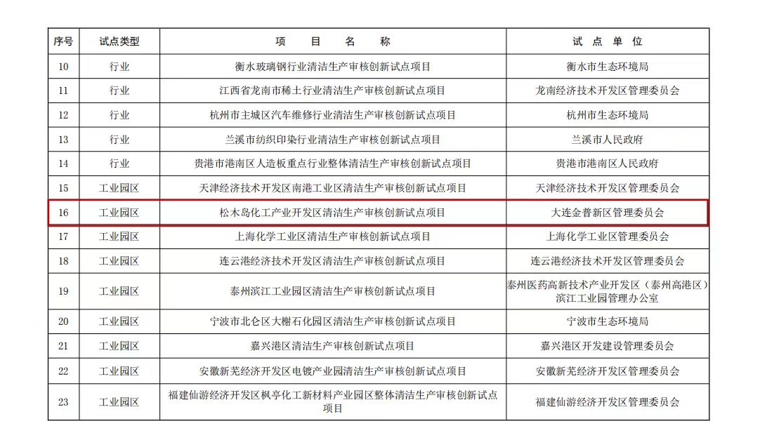 2024年8月,生态环境部、国家发展改革委联合公布了通过评估的清洁生产审核创新试点项目名单,松木岛化工产业开发区榜上有名。通过评估的创新试点项目范围内单个企业,视同开展一次清洁生产审核。这是对松木岛化工产业开发区清洁生产审核模式的充分肯定。