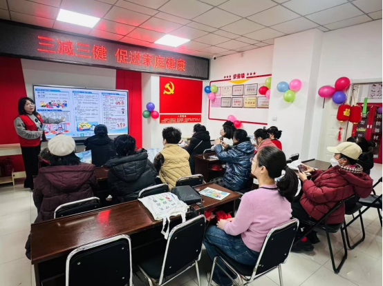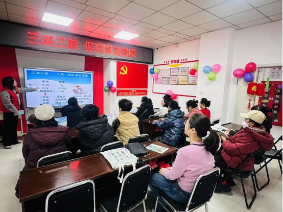 在宣传工作中,志愿者通过PPT展示“三减三健”核心信息知识,宣传全民健康生活方式,介绍什么是“三减三健”,告知居民重视日常饮食以及运动,保持合理膳食和适量运动。才能享受到健康、高品质的生活。