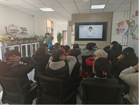 为增加活动趣味性,工作人员带领居民学习简单易学的耳部保健操,通过按摩耳部穴位,促进耳部血液循环,居民们纷纷跟着比划,现场学习氛围热烈。