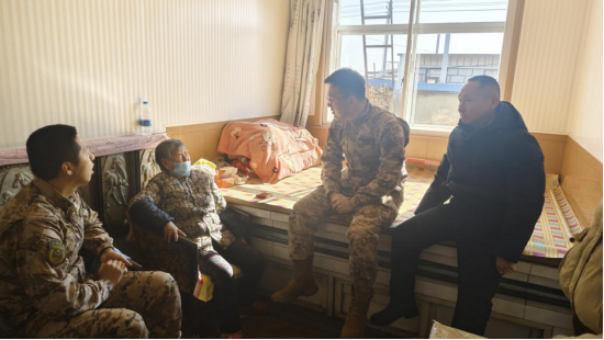 图3:黄文忠站长与海警部队领导入户了解烈士子女生活情况