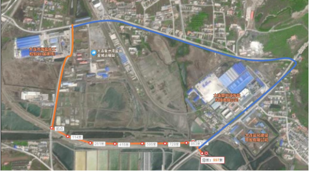 由于新规划线路(橙色)距铁路较近,本次邀请了新区自然资源局,测量道路距离铁轨中心距离,预估规划线路能否满足施工要求及运输要求。