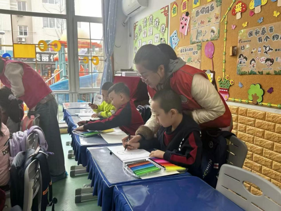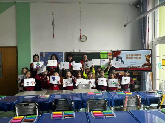 故事结束后,进入了充满创意的绘画环节。小朋友们拿起画笔,在画纸上认真地描绘着自己心中的雷锋形象。有的小朋友画出雷锋叔叔戴着军帽、面带微笑的模样,有的则画出雷锋叔叔扶着老人过马路的场景。虽然笔触稚嫩,但每一幅画都饱含着小朋友们对雷锋精神的理解和敬意。在绘画过程中,志愿者们穿梭在小朋友中间,给予他们鼓励和指导,帮助他们更好地展现自己的创意。