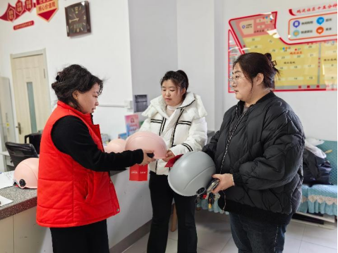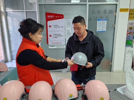 大孤山街道鹏运社区开展“爱心头盔免费送安全文明‘戴’到家”电动自行车头盔免费发放活动