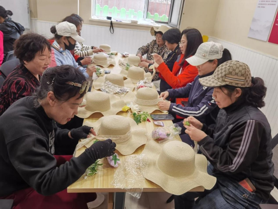 在母亲节来临之际,海岳社区新时代文明实践站、社工站、妇联、计生协会在海岳社区网格党群服务站,特别邀请社区居民及退役军人家属共同参与,举办 “花漾母爱,‘帽’美如花” 母亲节草帽 DIY 活动,为社区母亲们送上一份别具匠心的节日祝福。