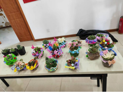 随后,小志愿者们参与 “清洁家园” 行动,分组清理小区绿化带垃圾、擦拭公共设施。学生们的互动环节尤为亮眼:他们先在社区准备的白色帆布包上,用画笔和颜料绘出心中的绿色家园;更将废旧塑料水瓶变废为宝,用剪刀仔细修剪瓶身,贴上小毛球、系上扭扭棒,亲手制作成别致的小盆栽花盆,再装入营养土、栽上多肉幼苗,一个个充满创意的环保盆栽就此诞生。