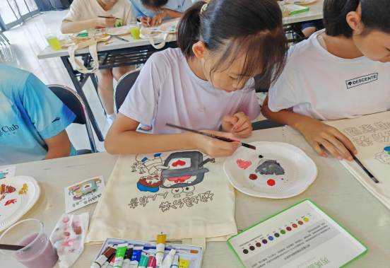 活动前,社区工作人员做了充分准备,采购了优质的空白帆布袋、色彩丰富的颜料、各种型号的画笔等材料。活动正式开始后,社区志愿者先为孩子们详细讲解了垃圾分类的相关知识,包括不同垃圾的分类标准、投放要求以及对环境的影响等。志愿者结合具体事例,让孩子们明白垃圾分类的重要性,为接下来的创作积累素材。在涂染环节,孩子们兴致勃勃地拿起画笔,发挥自己的想象力和创造力。有的孩子以四类垃圾的标识为原型,用鲜明的色彩在布袋上清晰呈现;有的孩子则描绘了垃圾经过分类处理后变废为宝的场景,有的还向志愿者请教色彩搭配的技巧,现场气氛十分融洽。经过一个多小时的努力,一个个原本朴素的布袋变成了承载着环保理念的艺术品。