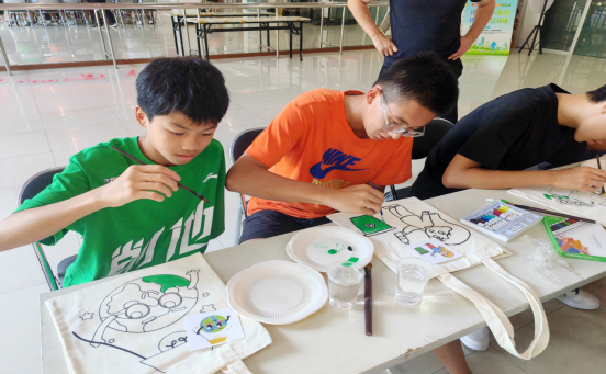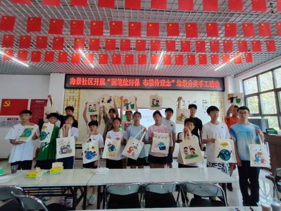 为深化青少年对垃圾分类知识的理解,让环保理念通过生动有趣的形式深入人心。近日,海景社区新时代文明实践站精心组织了一场涂染垃圾分类主题布包活动,吸引了众多青少年积极参与,大家用画笔在布袋上描绘出对环保的理解与热爱。