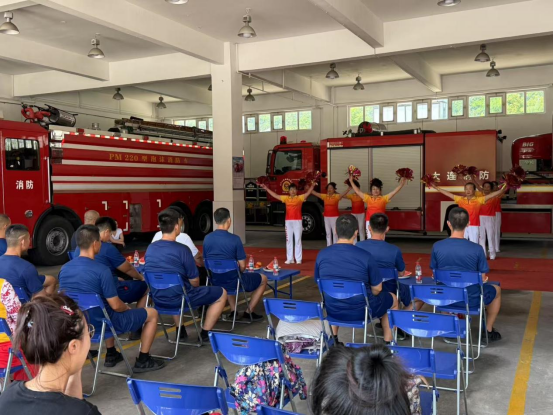 为庆祝中国人民解放军建军98周年,大力弘扬双拥优良传统,大孤山街道海港社区退役军人服务站在八一来临之际联合辖区居民开展“赓续血脉守初心,砥砺奋进再发展”文艺演出活动,为辖区消防救援站退役官兵送去节日慰问。