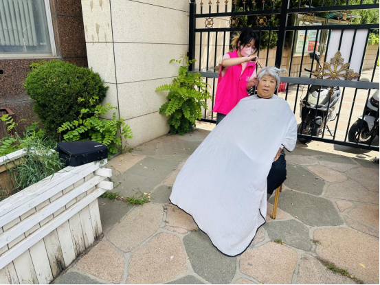 一旁的理发区域同样人气旺盛。专业理发师志愿者耐心询问每位居民的需求,根据他们的脸型和喜好设计发型,伴随着剪刀的咔嚓声和推子的嗡嗡声,精神面貌焕然一新。