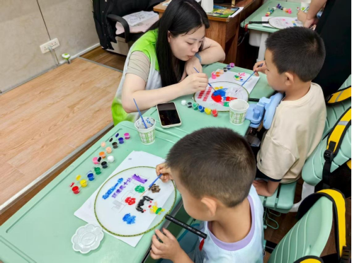随后活动中,为孩子们分发了垃圾分类涂鸦的小扇子,在老师的指导下,孩子们拿起水粉画笔,勾画出一幅幅垃圾分类作品画,创造出了属于自己的垃圾分类创作画。作品完成后,孩子们举起自己的扇子一一向大家展示,喜悦之情溢于言表。