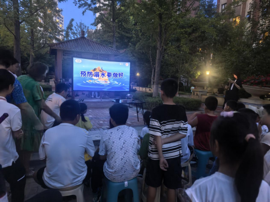 社区利用小区广场的电子屏,在傍晚居民活动集中时段循环播放防溺水宣传片。宣传片通过真实案例、动画演示等形式,直观展示溺水事故的发生过程及后果,讲解预防溺水的正确做法、同伴溺水时的科学施救方式(如大声呼救、寻找成人帮助、利用漂浮物施救等),让居民在休闲中接受安全教育,尤其帮助学生加深对溺水风险的认识。