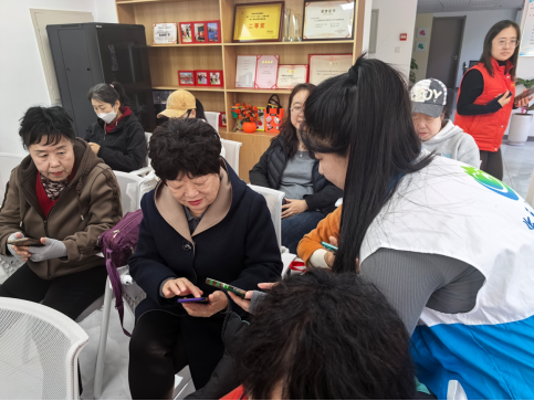 活动筹备阶段,社工郑洢挨家走访收集老人手机使用痛点,将党群服务中心打造成专属课堂,“五老”志愿者王彦主动从家中带来老花镜、放大镜供临时使用,细节处尽显贴心。教学中,“五老”志愿者各展所长:退休教师用通俗语言拆解操作,老兵手绘简易流程图辅助记忆,老党员们一对一陪伴练习,耐心解答重复提问;共青团发动年轻人周末陪长辈上课,社工重点教授独居老人“紧急呼叫”设置,民警结合案例普及反诈知识,多方合力让教学更具温度。