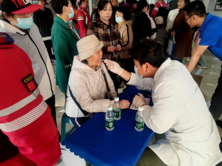 活动现场秩序井然,医护人员耐心细致地为每一位前来咨询的居民提供服务。义诊环节丰富实用,涵盖口腔问诊及全面检查,帮助居民排查龋齿、牙周病等常见口腔问题,普及口腔保健知识;AI中医问诊凭借智能科技,为居民提供体质辨识、养生建议等个性化健康指导;血压检测服务则让居民及时掌握自身基础健康指标,尤其受到中老年群体的欢迎。医护人员一边操作检查,一边细致解答居民关于秋冬季节疾病预防、日常饮食调理、慢病管理等方面的疑问,用通俗易懂的语言普及健康知识,引导居民养成科学健康的生活习惯。“平时去医院检查要排队挂号,今天在家门口就能免费看牙、做中医检查,医生讲得还特别细致,真是太方便了!”刚刚做完口腔检查和AI中医问诊的王阿姨高兴地表示。