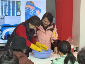 活动伊始,志愿者老师首先为居民们介绍了扎染这项国家级非物质文化遗产的历史渊源与工艺特点,激发了大家浓厚的兴趣。在实践环节,指导老师耐心讲解了捆扎、折叠、夹扎等基本技法。居民们跃跃欲试,发挥奇思妙想,将手中的白布通过皮筋、木棍、线绳等工具扎制成形态各异的结。