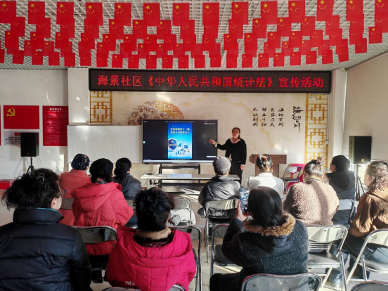 为深入贯彻落实《中华人民共和国统计法》及其实施条例,进一步提升社区居民与辖区单位的统计法律意识,营造“学法、懂法、守法、用法”的良好氛围,12月8日下午大孤山街道海景社区开展了以“法治铸魂四十二载 数据求真赋能复兴”为主题的《统计法》宣传活动。