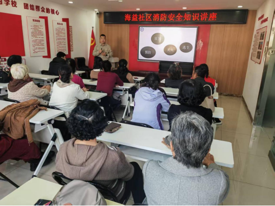 为提升居民火灾防范意识和应急处置能力,近日,大孤山街道海益社区新时代文明实践站联合社工室特别邀请了社区教育学院的王良老师,举办了一场以“火灾预防、初期补救与疏散演练”为主题的安全讲座。