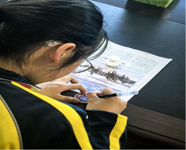 为让孩子们感受非遗文化的魅力,增强文化自信,活动特别邀请了大连工美协会副会长、金普民协主席刘勇,为孩子们带来了精彩的非遗手工--体验课。课堂上,传承人耐心讲解金州皮艺的历史渊源、制作工艺与文化内涵。孩子们听得认真、学得专注,原本普通的木板,在孩子们的手中逐渐变成了精致的小挂件。非遗手工活动不仅锻炼了孩子们的动手能力与专注力,更让他们在潜移默化中传承了中华优秀传统文化,激发了文化自豪感。