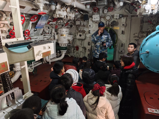 随后,队伍前往旅顺潜艇博物馆这一国防教育示范基地。登上退役的033型潜艇,狭窄的通道、密布的仪表盘让孩子们真切体会到潜艇兵的艰辛。在潜艇巡航体验馆,逼真的模拟场景让大家仿佛置身深海巡航,而海战英模画廊里的感人故事,更让孩子们对“牺牲奉献”有了深刻理解。