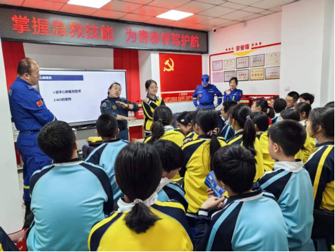 为进一步增强辖区青少年的安全防范意识,提升自我保护与应急救护能力,大孤山街道鹏运社区红十字会联合大连金普新区平安志愿者协会金普V士蓝天救援队为大连开发区滨海学校师生组织开展“掌握急救技能,为青春保驾护航”为主题青少年应急救护知识讲座。