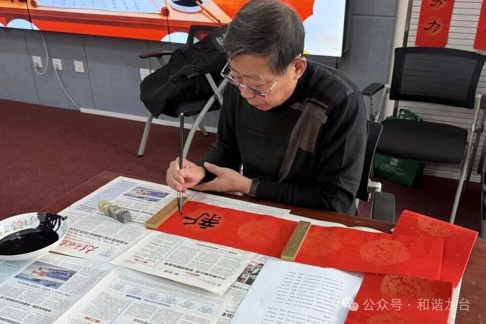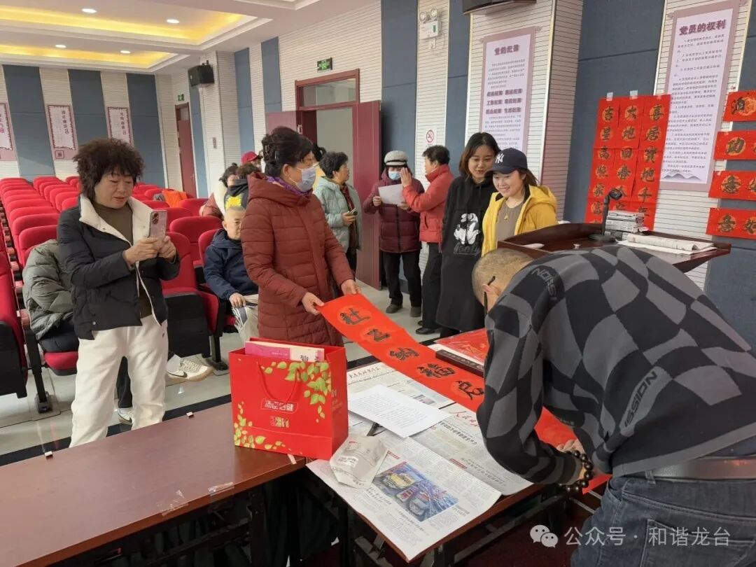 活动现场,居民们接踵而至,现场瞬间热闹起来。书法爱好者们凝神聚力,挥毫泼墨,笔锋或刚劲有力,或飘逸洒脱,“立春风光新岁景,马年福气满龙台”“笔蘸春阳书吉语,墨融瑞气贺马年”等春联跃然纸上,福字圆润饱满、寓意吉祥。