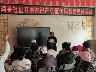 为做好知识产权宣传周版权宣传活动,提高居民群众的版权保护意识,营造尊重和保护版权的良好社会氛围,近日,大孤山街道海景社区新时代文明实践站开展了知识产权宣传周版权宣传活动。