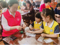 志愿者向老人和小朋友分发“旧物”、五彩绳、艾叶等材料,并向大家讲解以“旧物”制作香囊的步骤,随后,小朋友迫不及待开始制作香囊,现场其乐融融,随着时间流逝,一个个造型独特、针脚细密的香袋完美地呈现在大家眼前,小朋友再用艾叶装进好看的布袋,系上五彩丝线,一个精致的香囊就做好了,香囊清幽的香气弥漫开来,沁人心脾,老人和小朋友表示要争做低碳达人。