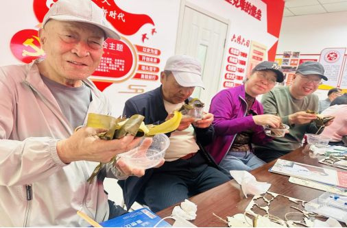 弘扬中华民族传统文化,增强民族自豪感和凝聚力,加强党员、居民代表、退役军人之间的交流与联系,社工们准备了各种口味的粽子供大家品尝,交流粽子的口感,唠着家常,说着心里话,欢声笑语,其乐融融。