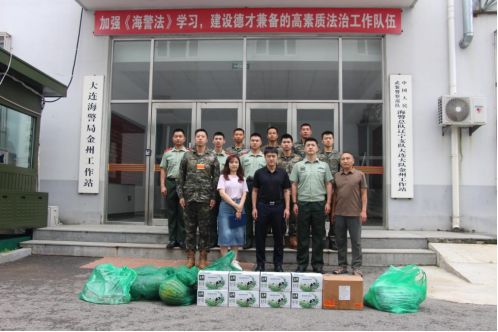 图3: 街道领导同大连海警局金州工作站官兵合影留念