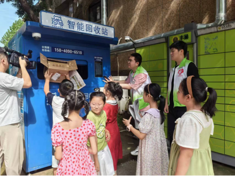 活动的最后一部分,志愿者们组织青少年们走进小区青少年们介绍可回收智能回收机的使用方法和优势。智能回收机作为现代科技与传统环保理念相结合的产物,能够自动识别并分类回收各类可回收物,大大提高了回收效率和准确性,青少年们亲手操作了智能回收机,将废弃物投入相应的回收口智能回收机不仅操作简单,而且能够即时反馈,让孩子们切实感受到了垃圾分类和回收的乐趣与意义
