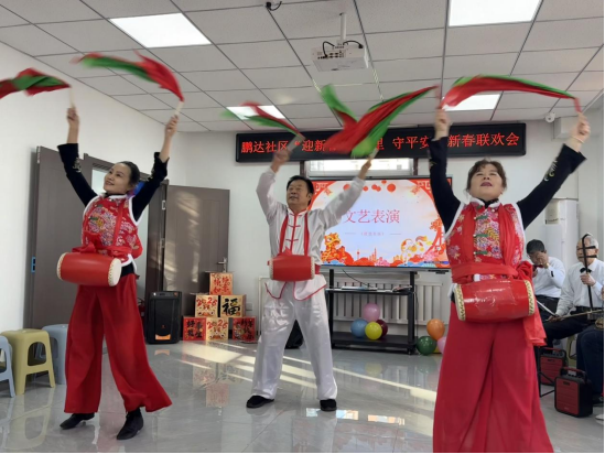 联欢会在优美抒情的蒙古舞《思念陪着鸿雁飞》中拉开序幕。来自春和小学的“小小安全员”登台,稚嫩而坚定的声音认真宣讲了反诈、冬季防火等安全知识,赢得了阵阵掌声。随后京剧选段《梨花颂》、腰鼓表演、藏族舞《我的九寨》、小合唱《珊瑚颂》,不同风格的曲目轮番登场,欢乐氛围持续升温。