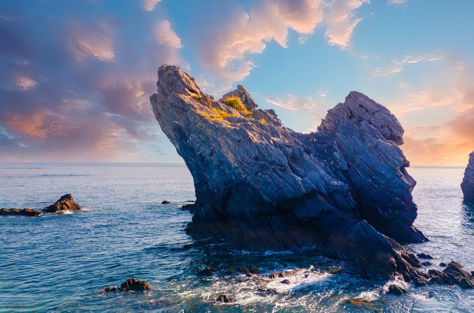 大连滨海国家地质公园于2005年9月经国土资源部批准,2008年5月1日正式对外开业。公园位于金石滩东部海岸线,是目前全国唯一的海岸线带国家地质公园,诞生于3-9亿年前震旦纪、寒武纪的地质地貌、沉积岩石和大量古生物化石,形成了壮丽的奇石景观。他们鳞次栉比地延绵在30余华里的海岸线上,形成典型的海蚀地貌景观,造就了金石园、玫瑰园、恐龙园、南秀园和鳌滩五大景群以及恐龙探海、贝多芬头像、蟹将出洞等近百处景点,享有“凝固的动物世界”、“神力雕塑的公园”和“天然的地质陈列馆”等美誉。其中,干裂构造岩石——龟背石,是世界上现存的两块中块体最大、保留最完整、断面结构显露最清晰的沉积岩标本,规模之巨大举世罕见,被誉为“天下第一奇石”。